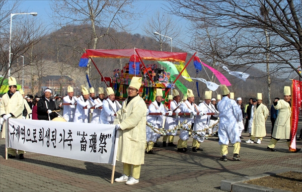 ±¸Á¦¿ª ÆÄµ¿À¸·Î ¸Å¸ô óºÐµÈ ¿ìÁ¦·ù °¡ÃàÀÇ ¿µÈ¥À» À§·ÎÇÏ°í ½Ã¸§¿¡ ºüÁ® ÀÖ´Â Ãà»êÀΰú ¹æ¿ªÈ°µ¿¿¡ Âü¿©ÇÑ °øÁ÷ÀÚ¿Í ÀÚ¿øºÀ»çÀÚ µîÀÇ ³ë°í¸¦ À§·ÎÇÏ´Â ÃàÈ¥Á¦(õåûëð®)°¡ 19ÀÏ ÅºÇö¸é ÅëÀϵ¿»ê ¼Ò°ø¿ø¿¡¼ Â÷ºÐÇÏ°í ¾ö¼÷ÇÏ°Ô ¿·È´Ù. źÇö¸é ÀÌÀå´ÜÇùÀÇȸ(ȸÀå ±è³«ÀÎ)°¡ ÁÖ°üÇÑ Á¦·Ê´Â ½ÄÀüÇà»ç·Î ±Ý»ê¸® ¹Î¿äº¸Á¸È¸ÀÇ »ó¿©Çà·ÄÀÌ µ¿È°æ¸ð°ø¿ø¿¡¼ Ãâ¹ßÇØ ÇìÀ̸® ¿¹¼ú¸¶À» ³»ºÎ¸¦ °ÅÃÄ ¼ºµ¿»ç°Å¸®¿Í ¼Ò°ø¿ø±îÁö À̾îÁ³À¸¸ç »ó¿© µµÂøÀÌÈÄ¿¡´Â ¼Ò¸®²Û Á¶Èì½Â¾¾ÀÇ ¹¦Áö´ÙÁö±â(ȸ´ÙÁö)¿Í ÀÚ¸®°ÈÀÌ Ãã µî ÀüÅë ÀǽÄÀÌ ÁøÇàµÆ´Ù. ±è³«ÀΠȸÀåÀº ¡°±¸Á¦¿ªÀ¸·Î Èñ»ýµÈ °¡ÃàÀÇ ¿µÈ¥À» À§·ÎÇϰí ȤÇÑ¿¡µµ ¹æ¿ªÈ°µ¿¿¡ ÃÖ¼±À» ´ÙÇÑ ºÀ»çÀÚÀÇ ³ë°í¿¡ °æÀǸ¦ Ç¥ÇÑ´Ù¡±¸ç ¡°±¸Á¦¿ªÀ¸·Î À§±â¿¡ ºüÁ® ÀÖ´Â Ãà»ê³ó°¡¿¡°Ô Èû°ú ¿ë±â¸¦ ÁÖ´Â °è±â°¡ µÇ±æ ¹Ù¶õ´Ù¡±°í ¸»Çß´Ù.