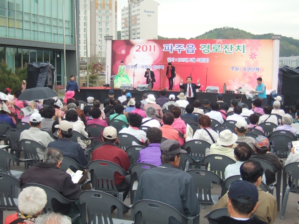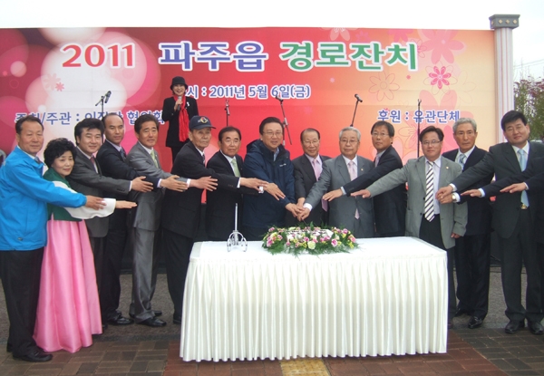 ¾î¹öÀ̳¯À» ¸Â¾Æ 'ÆÄÁÖ½ÃÀÇ ±Ùº»' ÆÄÁÖÀ¾ÀÌÀå´ÜÇùÀÇȸ(ȸÀå ÃÖ¿µÇÑ)°¡ ÁÖÃÖÇÏ´Â '2011³â ¾î¸£½Å ÃÊû °æ·ÎÀÜÄ¡'°¡ 6ÀÏ ÆÄÁÖÀ¾»ç¹«¼Ò ±¤Àå¿¡¼ ¼ºÈ²¸®¿¡ ¿·È´Ù. °æ·ÎÀÜÄ¡´Â °æ±â¹Î¿ä ¿¹´Éº¸À¯ÀÚÀÎ ÀÌÀºÁÖ ¸íâÀ» ºñ·ÔÇØ °æ±â¹Î¿ä Àü¼öÀÚ µîÀÌ Ã⿬, ¡®È¸½É°î¡¯ ¡®Á¤¼±¾Æ¸®¶û¡¯ µî Èï°Ü¿î ¿ì¸® °¡¶ôÀ¸·Î ÈïÀ» µ¸¿ì¾úÀ¸¸ç ¾î¸£½ÅµéÀº ÆÄÁÖÀ¾ºÎ³àȸ(ȸÀå À¯¾ç¼ø) µîÀÌ ¸¶·ÃÇÑ À½½Ä°ú °úÀÏ, À½·á¼ö µîÀ» µé¸ç ¼ÒÁßÇÑ ½Ã°£À» º¸³Â´Ù. Á¶±Ô¿µ À¾ÀåÀº ¡°ÆÄÁÖÀ¾Àº ¾î¸£½ÅÀ» °ø°æÇÏ´Â üø¸¦ ½ÇõÇÏ´Â ¸¶À»¡±À̶ó¸ç ¡°(¾î¸£½ÅµéÀÇ) Áö¿ª¹ßÀüÀ» À§ÇÑ ¼ÒÁßÇÑ °í¾ðÀ» ±Í´ã¾Æ µè´Â ÇàÁ¤À» ÆîÄ¥ °ÍÀ» ´ÙÁüÇÏ°í ¾î¸£½ÅµéÀÇ ¹«º´Àå¼ö¿Í ÇູÀÌ ÇÔ²² ÇÏ±æ ±â¿øÇÑ´Ù¡±°í ¸»Çß´Ù. ÀÌÀÎÀç ½ÃÀåÀº ¡°ÆÄÁÖÀ¾Àº ÆÄÁÖÀÇ Áß½ÉÀÌÁö¸¸ ¼Ò¿Ü¹Þ°í ³«ÈÄµÈ Áö¿ª¡±À̶ó¸ç ¡°ÆÄÁÖÀ¾À» ¿À·§µ¿¾È »ì°í ½ÍÀº ÇູÇÑ ÆÄÁÖÀÇ Áß½ÉÀÌ µÇµµ·Ï ÁغñÇϰí ÀÖÀ¸´Ï ±â´ëÇØ ´Þ¶ó¡±°í Èñ¸Á ¸Þ½ÃÁö¸¦ ´øÁ®, ¾î¸£½Åµé·ÎºÎÅÍ ¶ß°Å¿î ¹Ú¼ö°¥Ã¤¸¦ ¹Þ¾Ò´Ù. Çà»ç¸¦ ÁÖ°üÇÑ ÃÖ¿µÇÑ ÇùÀÇȸÀåÀº ¡°¿¹³â°ú ´Þ¸® ÁÖ¹ÎÈÇÕ°ú °æ·Îȿģ »ç»óÀ» ½ÇõÇÏ´Â ¾î¸£½Å ÀÜÄ¡¸¦ ÀÚ¹ßÀûÀ¸·Î ¸¶·ÃÇß´Ù¡±¸é¼ ¡°ÆÄÁÖÀ¾ÀÇ ±âµÕÀÎ ¾î¸£½ÅµéÀÌ °Ç°Çϰí ÇູÇÑ »ýȰÀ» ¿µÀ§ÇÒ ¼ö ÀÖµµ·Ï 1¸¸3õ¿© ÁֹεéÀÌ ³ë·ÂÇØ ³ª°¥ °Í¡±À̶ó°í ¹àÇû´Ù. ¿À·£ Ä£¿ìµé°ú Çà»çÀåÀ» ãÀº Á¶±Ô¿µ(83*Çâ¾ç2¸®) ÇҾƹöÁö´Â ¡°ÇªÁüÇÑ »óÀ» ¹Þ°í º¸´Ï ±âºÐÀÌ ÁÁ°í °¡½¿ÀÌ ¶Ú´Ù¡±¸é¼ ¡°ÆÄÁÖÀ¾ÀÌ ÆÄÁÖ¸¦ ´ëÇ¥ÇÏ´Â üøÀÇ ¸¶À»·Î ÀÚ¸®¸Å±èÇÏ´Â °è±â°¡ µÇ±æ ±â´ëÇÑ´Ù¡±°í Çà»ç °ü°èÀÚ¿¡°Ô °í¸¶¿òÀ» ÀüÇß´Ù. ¿øÈñ°æ ±âÀÚ
