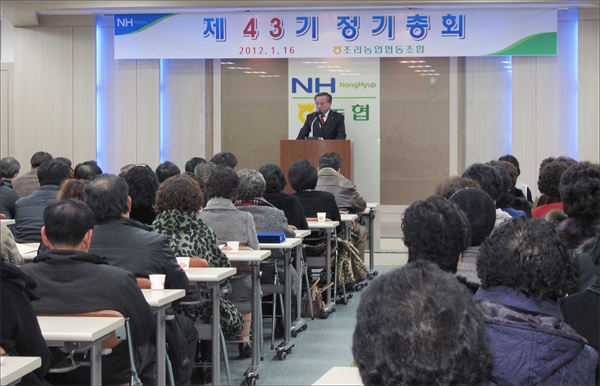 ÃÑȸ¿¡¼­ ±èÀçȯ Á¶ÇÕÀåÀº Àλ縻À» ÅëÇØ ¡°Áö³­ÇØ Á¶ÇÕ¿ø ¿©·¯ºÐÀÇ ³óÇù»ç¿ë ÀÌ¿ë°ú »ç¶ûÀ¸·Î ÁÖ¿ä»ç¾÷ÀÌ ¼ºÀåÇÏ´Â ¼º°ú¸¦ °Åµ×´Ù¡±¸é¼­ ¡°(Á¶¸®³óÇùÀº) ±¹³»¿Ü °æ±âºÒȲ°ú ³óÃ̰æÁ¦°¡ ¾î·Á¿î °¡¿îµ¥µµ À§±â¸¦ ±âȸ·Î ¹Ù²ã µµÀüÁ¤½Å°ú Â÷º°È­µÈ °æ¿µ¸¶Àεå·Î ¼ö³â °£ Áö¼ÓÀûÀÎ ¼ºÀåÀ» ´Þ¼ºÇß´Ù¡±°í Áö³­ÇØ ¼º°ú¸¦ º¸°íÇß´Ù.