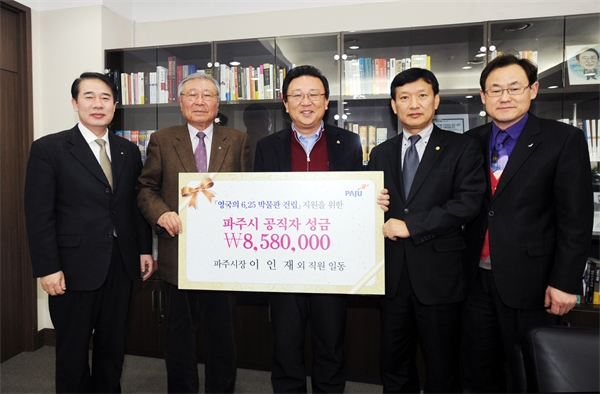 ÀÌÀÎÀç ½ÃÀåÀº 17ÀÏ ¡®¿µ±¹ÀÇ 6.25 ¹Ú¹°°ü °Ç¸³Áö¿ø ¼º±Ý¡¯ 858¸¸ ¿øÀ» ¼Û´Þ¿ë ¹Ú¹°°ü°Ç¸³Áö¿øÀ§¿øÈ¸ À§¿øÀå¿¡°Ô Àü´ÞÇß´Ù. Àü´ÞµÈ ¼º±ÝÀº Á÷¿ø 1õ226¸íÀÌ ÀÚ¹ßÀûÀ¸·Î ½Ê½ÃÀϹÝÀ¸·Î ¸ð±ÝÇß´Ù. ÀÌÀÎÀç ½ÃÀåÀº ¡°½Ã¹Î°ú ¶æÀ» ÇÔ²² ÇÏ°Ô µÇ¾î ¸Å¿ì ±â»Ú´Ù.¡±¸ç ¡°½Ã¹ÎÁÖµµÀÇ Áö¿øÈ°µ¿À» ÅëÇØ ´ëÇѹα¹À» dzÀüµîÈ À§±â¿¡¼ ±¸ÇØÁØ À̵é°ú ÀÚÀ¯ ¼öÈ£¸¦ À§ÇÑ ¿ª»ç¸¦ ±â¾ïÇÒ »Ó¸¸ ¾Æ´Ï¶ó Æòȸ¦ »ó±âÇÏ°í ±Û·Î½ºÅÍ¿¬´ëÀÇ ±íÀº Àο¬¿¡ º¸´äÇÏ´Â ±æÀÌ µÇ±æ ¹Ù¶õ´Ù.¡±°í ÀüÇß´Ù. ¿µ±¹ ±Û·Î½ºÅͽÿ¡ °Ç¸³¿¹Á¤ÀÎ 6.25¹Ú¹°°üÀº ±Û·Î½ºÅÍ¿¬´ë Ãâ½Å ±â¾÷Àΰú ÂüÀü¿ë»çµéÀÌ 6.25ÀüÀï°ú ÇÑ·ù µî Çѱ¹ÀÇ ¹ßÀü»óÀ» Àü½ÃÇÒ ¸ñÀûÀ¸·Î °Ç¸³ ÃßÁøÇϰí ÀÖÀ¸¸ç, ÈÞÀü 60ÁÖ³âÀÌ µÇ´Â 2013³â ¿Ï°øÀ» ¸ñÇ¥·Î °Ç¸³ºñ¿ë 45¾ï ¿øÀ» ¸ð±Ý Áß¿¡ ÀÖ´Ù.