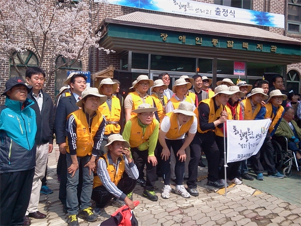 Àå¾ÖÀΰú ÀÚ¿øºÀ»çÀÚ°¡ ÇÔ²² ÇÏ´Â 'ÅëÀÏ ¹ëÆ®¸¦ µû¶ó ¾²¸®°í!' ¿øÁ¤´ë°¡ 20ÀÏ ¿ÀÈÄ Àåµµ¿¡ ¿Ã¶ú´Ù. 21ÀÏ °¿ø °í¼º ÅëÀÏÀü¸Á´ë¸¦ Ãâ¹ß, 28ÀÏ ÀÓÁø°¢¿¡ µµÂøÇÏ´Â ÅëÀÏ ´ëÀåÁ¤Àº Àå¾ÖÀÎÁ¾ÇÕº¹Áö°ü Àå¾ÖÀÎ 10¸í°ú ºÀ»ç¸ðÀÓÀÎ µðµõȸ¿Í °Å¸®ÀÇ Ãµ»ç µî ÀÚ¿øºÀ»çÀÚ 10¸íÀÌ ÇÔ²² µµº¸·Î 7¹Ú8Àϵ¿¾È Çà»ç¸¦ ÁøÇàÇÑ´Ù. 20ÀÏ Àå¾ÖÀÎÁ¾ÇÕº¹Áö°ü¿¡¼ ¿¸° ÃâÁ¤½Ä¿¡´Â À¯¼®¿µ °üÀå°ú ¹ÚÁ¤ ÆÄÁ̷ֹ¡¹ßÀü¿¬±¸¼ÒÀå, ±è¿µ±â ¹ý¿øÀ¾Àå¾ÖÀÎÀÚȰÃËÁøÀ§¿øÀå, ÃÖâ½Ä ÁÁÀº Ä£±¸µé ´ëÇ¥, ±ÇÅÂÈ£ ÇöÁö°Ç¼³ ´ëÇ¥ µî ÈÄ¿øÀÚ°¡ ÀÚ¸®¸¦ ÇÔ²² Çß´Ù.