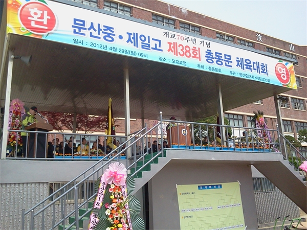 ÆÄÁÖ¸¦ ´ëÇ¥ÇÏ´Â ¸í¹®Çб³·Î ÀÚ¸®¸Å±èÇϰí ÀÖ´Â ¹®»êÁß*Á¦ÀÏ°í±³ Ãѵ¿¹® üÀ°´ëȸ°¡ 29ÀÏ ¸ð±³ ¿îµ¿Àå¿¡¼­ ¼ºÈ²¸®¿¡ ¿­·È´Ù.