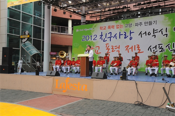 Çб³Æø·Â Zeroȸ¦ À§ÇÑ ¡®2012 Ä£±¸»ç¶û ¼¾à ¹× Çб³Æø·Â Á¦·Î ¼±Æ÷½Ä¡¯ÀÌ ÃÖ±Ù °í¾ç½Ã ¶óÆä½ºÅ¸¿¡¼ ¿·È´Ù. Çà»ç¿¡´Â ÀÌÀÎÀç ½ÃÀå, ÃÖ¼º °í¾ç½ÃÀåÀ» ºñ·ÔÇØ ÆÄÁÖ*°í¾ç±³À°Áö¿øÃ» °ü°èÀÚ, °ËÂû °ü°èÀÚ, ¹ý¹«ºÎ ¹üÁË¿¹¹æÀ§¿ø, ¹üÁËÇÇÇØÀÚÁö¿ø¼¾ÅÍ, ¹ý¹«ºÎ °í¾çº¸È£°üÂû¼Ò µî À¯°ü±â°ü°ú Á¦9»ç´ÜÀÌ ÀÚ¸®¸¦ ÇÔ²² Çß´Ù. Çà»ç´Â 1,2ºÎ·Î ³ª´² û¼Ò³âµéÀÇ ³¢¿Í Àå±â¸¦ ¼±º¸¿´À¸¸ç ¼¼°æ°íµîÇб³ Å±ǵµ ½Ã¹ü°ú ¹®»ê¿©°í PUSHÆÀÀÇ ´í½º´Â ¸¹Àº ¹Ú¼ö°¥Ã¤¸¦ ¹Þ¾Ò´Ù. À̳¯ Çà»ç´Â ´Ü¼øÈ÷ Çб³Æø·ÂÀ» ±ÙÀýÇÏÀÚ´Â Çà»ç¸¦ ¶°³ª Áö¹æÀÚÄ¡´Üü¿Í ±³À°±â°ü, °æÂû, û¼Ò³â À¯°ü´Üü°¡ ÈûÀ» ÇÕÃÄ ¡®Ã»¼Ò³âµéÀÇ ¹®Á¦¸¦ ÇØ°áÇϰí Çб³Æø·ÂÀ» ¾ø¾ÖÀÚ¡¯´Â ´ÙÁüÀÇ ÀÚ¸®¿´´Ù. Çà»ç¿¡ Âü¿©ÇÑ ÇÑ ÇлýµéÀº ¡®½º½º·Î Çб³Æø·Â ¿¹¹æ¿¡ ¾ÕÀå¼°í, Çб³Æø·Â¿¡´Â °¡´ãÇÏÁö ¾Ê°Ú´Ù.¡¯´Â ´ÙÁü°ú ¡®³» Ä£±¸¿Í °¡Á· ±×¸®°í ÀÌ¿ôÀ» ´õ »ç¶ûÇÏÀÚ¡¯°í ¾à¼ÓÇß´Ù.
