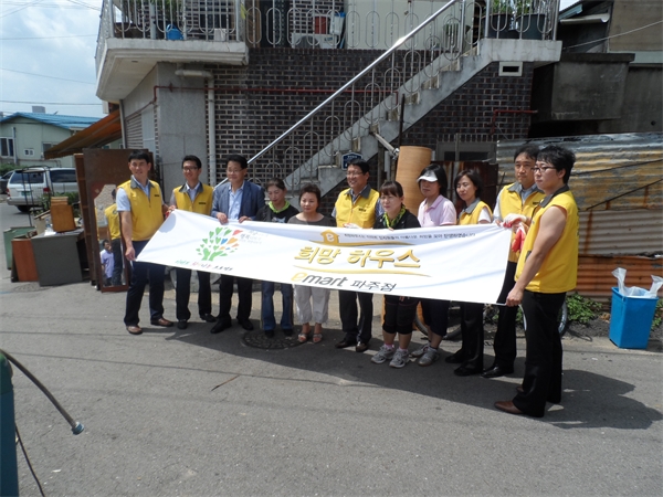 À̸¶Æ® ÆÄÁÖÁ¡(ÁöÁ¡Àå ÃÖ°æÁ¾)°ú ¿îÁ¤Á¡(ÁöÁ¡Àå ÀÌÁ¾ÀÏ)Àº Áö³´Þ 27Àϰú 31ÀÏ Àú¼Òµæ°¡±¸ Áý¼ö¸® ¹× °øºÎ¹æ Áö¿øÀ» À§ÇÑ Èñ¸ÁÇϿ콺 »ç¾÷À» À§ÇØ ±¸½½¶¡À» Èê·È´Ù. Áö¿ª»çȸ¿Í ÇÔ²²ÇÏ´Â ¡®Èñ¸Á ³ª´® ÇÁ·ÎÁ§Æ®¡¯·Î ÃßÁøµÈ Èñ¸ÁÇϿ콺 »ç¾÷¿¡´Â ÆÄÁÖÁ¡, ¿îÁ¤Á¡ Á÷¿ø°ú ¿îÁ¤Á¡ ÁֺκÀ»ç´Ü µîÀÌ ÀÚ¿øºÀ»ç·Î Âü¿©ÇßÀ¸¸ç Àû½ÊÀÚºÀ»çȸ ÆÄÁÖÁö±¸ ÇùÀÇȸ(ȸÀå ÃÖº´Ã¶)¿Í ¿©¼º´ÜüÇùÀÇȸ(ȸÀå ¼Çʳ²) µî¿¡¼ ºÀ»çȰµ¿¿¡ ÈûÀ» º¸ÅÉ´Ù. À̹ø Èñ¸ÁÇϿ콺 »ç¾÷Àº ÁÖ°Å¿©°ÇÀÌ ¿¾ÇÇÑ ÆÄÁÖÀ¾ µî °ü³» Àú¼Òµæ°¡Á¤ 4°¡±¸¸¦ ´ë»óÀ¸·Î 480¿©¸¸ ¿øÀ» µé¿© µµ¹è, ÀåÆÇ±³Ã¼, ½ÌÅ©´ë ¼³Ä¡ µî °¡±¸º° ¸ÂÃãÇü Áý¼ö¸®¸¦ ºñ·ÔÇØ ¾î¸°ÀÌ °øºÎ¹æ ²Ù¸çÁÖ±â µî ´Ù¾çÇÑ »ç¾÷À» ÁøÇàÇß´Ù. ¶ÇÇÑ ´ëÇÑÀû½ÊÀÚºÀ»çȸ ÆÄÁÖÁö±¸ ÇùÀÇȸ´Â ÆÄÁÖÀ¾ ¼ÒÀç °¡Á¤¿¡ ¹°ÀÌ »õÁö ¾Êµµ·Ï õÁ¤ º¸¼öÀÛ¾÷ µîÀ» º°µµ ½Ç½ÃÇØ ÀÌ¿ô »ç¶ûÀ» ½ÇõÇß´Ù. À̸¶Æ® °ü°èÀÚ´Â ¡°¹«´õÀ§¿¡µµ ÀÚ¿øºÀ»ç¿¡ ±¸½½¶¡À» È기 ÀÚ¿øºÀ»çÀÚÀÇ ³ë°í¿¡ ±íÀº °¨»ç¸¦ µå¸°´Ù¡±¸é¼ ¡°´õºÒ¾î »ç´Â »çȸ¸¦ ¸¸µé±â À§ÇÑ Èñ¸Á ³ª´® ÇÁ·ÎÁ§Æ®´Â Áö¼ÓµÉ °Í¡±À̶ó°í ¸»Çß´Ù. À̸¶Æ®ÀÇ Èñ¸Á ³ª´® ÇÁ·ÎÁ§Æ®¿¡¼´Â ¾î¸°ÀÌ Çпëǰ Áö¿øÀ» ºñ·ÔÇØ Àú¼Òµæ °¡Á¤ ¹°Ç° ÈÄ¿ø µî ´Ù¾çÇÑ Áö¿ª»çȸ ºÀ»çȰµ¿À» Àü°³Çϰí ÀÖ´Ù.