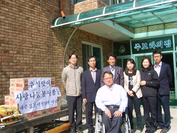 ¡®¹ÎÁßÀÇ ÁöÆÎÀÌ¡¯µéÀÌ Ãß¼®À» ¸Â¾Æ »ç¶û ³ª´®À» ½Çõ, ÁÖÀ§¸¦ ÈÆÈÆÇÏ°Ô Çß´Ù. ÆÄÁÖ°æÂû¼(¼Àå ±èâ½Ä) û·Åµ¿¾Æ¸® Ŭ¸°ÁöÅ´ÀÌ(ȸÀå ±è¼®ÁÖ °æÀ§)´Â 25ÀÏ »çȸº¹Áö½Ã¼³ÀÎ ÁÖº¸¶óÀÇ Áý¿¡¼ ¡®Ãß¼®¸ÂÀÌ »ç¶û ³ª´®¡¯ Ȱµ¿À» ½Ç½ÃÇß´Ù. À̳¯ ȸ¿ø 10¿©¸íÀº º¹Áö½Ã¼³¿¡¼ »ýȰÇϰí ÀÖ´Â Àå¾ÖÀε鿡°Ô ½Ò°ú ¶ó¸é µî »ýÇÊǰÀ» Àü´ÞÇÏ°í ½Ã¼³ÁÖº¯ û°áȰµ¿À» ½Ç½ÃÇß´Ù. ±è¼®ÁÖ È¸ÀåÀº ¡°»ç¶û ³ª´®À» ÅëÇØ µû¶æÇÑ »çȸ ºÐÀ§±â°¡ È®»êµÇ±æ ±â´ëÇÑ´Ù¡±¸é¼ ¡°µµ¿òÀÌ ÇÊ¿äÇÑ ½Ã¼³°ú ´Üü¿¡ ã¾Æ ºÀ»çȰµ¿À» Áö¼ÓÇÒ °Í¡±À̶ó°í ¸»Çß´Ù.