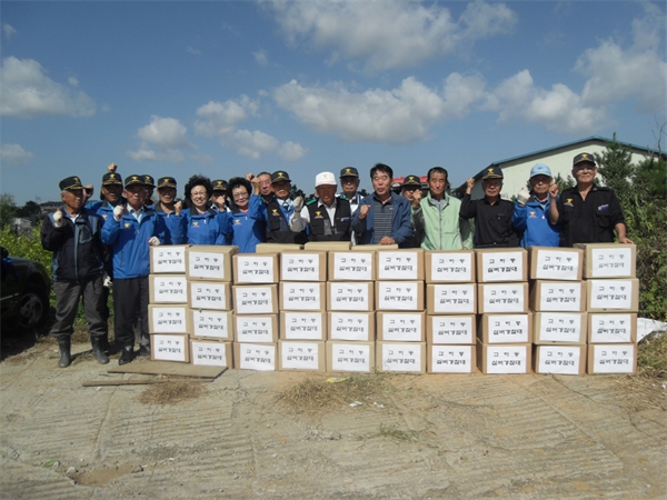 ±³Çϵ¿ ½Ç¹ö°æÂû´ë(´ëÀå ¿À¸í¿)´Â 11ÀÏ ºÒ¿ìÀÌ¿ôÀ» µ½±â À§ÇØ ¼öÈ®ÇÑ ¡®»ç¶ûÀÇ °í±¸¸¶¡¯¸¦ Áö¿ª¾Æµ¿¼¾ÅÍ¿Í ¾î¸£½Å*¾Æµ¿½Ã¼³, Ǫµå-¹ðÅ©¿¡ ±âŹÇß´Ù. ¡®»ç¶ûÀÇ °í±¸¸¶¡¯´Â ¿À¸í¿ ´ëÀåÀÌ ¹«»ó ´ë¿©ÇÑ ¹ç 500¿© Æò¿¡ 28¸íÀÇ ´ë¿øµéÀÌ ÇѸ¶À½À¸·Î Àç¹è, 50»óÀÚ(10kg µéÀÌ)¸¦ ¼öÈ®Çß´Ù. ¿À¸í¿ ´ëÀåÀº ¡°Àå±âÀûÀÎ °æ±âħü¿Í »çȸ ¾ç±ØÈ·Î ÁÖº¯¿¡ ¾î·Á¿î ÀÌ¿ôµéÀÌ ¸¹ÀÌ ÀÖ´Ù¡±¸é¼ ¡°»ç¶ûÀÇ °í±¸¸¶°¡ ¸öÀÌ ºÒÆíÇÑ ¾î¸£½Å°ú °¡Á¤ÇüÆíÀÌ ¾î·Á¿î °¡Á¤¿¡ ÀÛÀº µµ¿òÀÌ µÆÀ¸¸é ÁÁ°Ú´Ù¡±°í ¸»Çß´Ù. ±³Çϵ¿ ½Ç¹ö°æÂû´ë´Â ºÒ¿ìÀÌ¿ôµ½±â ¡®»ç¶ûÀÇ °í±¸¸¶¡¯¸¦ ºñ·ÔÇØ °Å¸® û°áȰµ¿ µî Áö¿ª»çȸ ºÀ»çȰµ¿À» ½Ç½Ã, Áö¿ªÀÇ ¾î¸¥À¸·Î Á¸°æ¹Þ°í ÀÖ´Ù.