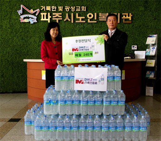 ±ºÀΰøÁ¦È¸ ÅõÀÚ»çÀÎ (ÁÖ)·ÏÀÎÀ½·á°¡ Ȧ·Î »ç´Â ¾î¸£½Åµé¿¡°Ô ûÁ¤¼ö¸¦ ÈÄ¿øÇÑ´Ù. (ÁÖ)·ÏÀÎÀ½·á´Â 12ÀÏ ³ëÀκ¹Áö°ü¿¡¼ Ȧ·Î »ç´Â ¾î¸£½Å 40¸í¿¡°Ô ÀÚ»çºê·£µåÀÎ ¡®·ÏÀÎÀ½·á DMZ ûÁ¤¼ö¡¯¸¦ ¸Å¿ù 240º´(2¸®ÅÍ ¿ë±â)À» ¿¬Áß Áö¿øÇÏ´Â ÈÄ¿øÇà»ç¸¦ °¡Á³´Ù. (ÁÖ)·ÏÀÎÀ½·á´Â ¸Å¿ù 1Â÷·Ê ûÁ¤¼ö¸¦ ÈÄ¿øÇÏ¸ç ³ëÀκ¹Áö°ü ³ëÀε¹º¸¹ÌµéÀÌ È¦·Î »ç´Â ¾î¸£½Å¿¡°Ô ¹è´ÞÇÑ´Ù. ³ëÀκ¹Áö°ü ÀÓâ´ö °üÀåÀº ¡°°æÁ¦ÀûÀ¸·Î ¾î·Á¿î Ȧ·Î »ç´Â ¾î¸£½Åµé¿¡°Ô »ý¼ö¸¦ ÈÄ¿øÇÑ ¾÷ü¿¡ ±íÀº °¨»ç¸¦ µå¸°´Ù¡±¸é¼ ¡°¡®DMZ ûÁ¤¼ö¡¯¸¦ Áö¿ª¿¡ È«º¸Çϴµ¥ ¾ÕÀå¼°Ú´Ù.¡±°í ¹àÇû´Ù. ¿¬Ãµ±º¿¡ º»»ç¸¦ µÎ°í ÀÖ´Â (ÁÖ)·ÏÀÎÀ½·á´Â °æ±â°ü±¤°ø»ç¿Í ºñ¹«ÀåÁö´ë(DMZ) °ü±¤È°¼ºÈ¸¦ À§ÇÑ ¾÷¹«Çù¾àÀ» ü°áÇÏ°í °æ±â°ü±¤°ø»ç ÁÖ°ü ÃàÁ¦¿Í °ø¿¬À» ºñ·ÔÇØ ±¹Á¦Çà»ç, üÇè, ±³À° µî °¢Á¾ Çà»ç¿¡ »ý¼ö¸¦ ÇùÂùÇßÀ¸¸ç Àå¾ÖÀδÜü¿¡µµ »ý¼ö¸¦ ÈÄ¿øÇϰí ÀÖ´Ù.