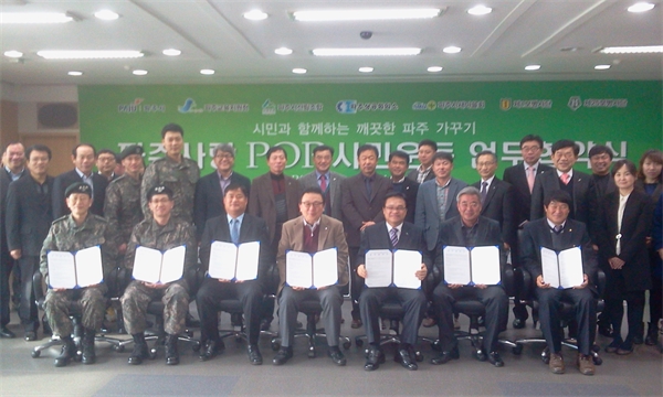 'ÆÄÁÖ»ç¶û POP(Power Of Paju People) ºÀ»ç´Ü' ½Ã¹Î¿îµ¿ ¾÷¹« Çù¾à½ÄÀÌ 13ÀÏ ¿ÀÈÄ ½Ãû ȸÀǽǿ¡¼ ¿·È´Ù. À̳¯ Çù¾à½Ä¿¡´Â ÀÌÀÎÀç ½ÃÀå, ÇѴ뱺 ÆÄÁÖ±³À°Áö¿øÃ» °æ¿µÁö¿ø°úÀå, À̼º·Ä ÆÄÁֻ긲Á¶ÇÕÀå, À嵿¹® ÆÄÁÖ»ó°øÈ¸ÀǼÒȸÀå, ÀÌÀ翵 ÆÄÁֽûõ¸¶À»ÁöµµÀÚÇùÀÇȸÀå, À̱âö 1»ç´Ü ºÎ»ç´ÜÀå, À̵¿±Ù 25»ç´Ü ºÎ»ç´ÜÀå µî Çù¾à °ü°èÀÚ°¡ Âü¼®, Çù¾à¼¿¡ ¼¸íÇÏ°í º»°ÝÀûÀΠȰµ¿¿¡ µé¾î°¬´Ù. 'ÆÄÁÖ»ç¶û POP(Power Of Paju People) ºÀ»ç´Ü'Àº ½Ã¹ÎµéÀÇ Âü¿©*¼ÒÅë*Çù·ÂÀ» ÅëÇØ °ø¿ø³ìÁö¸¦ ºñ·ÔÇØ µµ·Îº¯, µî»ê·Î µî »ýȰ°ø°£À» Á÷Á¢ °¡²Ù´Â ÀÚ¿øºÀ»ç´ÜÀ¸·Î ¹Î*ÇÐ*±â*°ü*±º µîÀÌ Âü¿©ÇÑ´Ù.