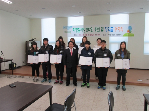 ÆÄÆò¸é Âü»ç¶ûÀåÇÐȸ(ȸÀå ±è°ø¸¸)´Â 21ÀÏ ÆÄÆò¸é ÀÚ¿¬³ª´®¼¾ÅÍ¿¡¼­ ÀåÇÐ±Ý Àü´Þ½ÄÀ» °¡Á³´Ù.