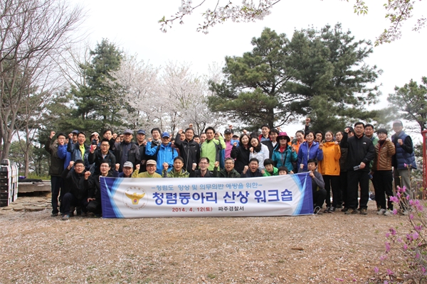 ÆÄÁÖ°æÂû¼(¼Àå ±èÁ¾±¸)´Â 12ÀÏ ±ÝÃ̵¿ ÇÐ·É»ê µÑ·¹±æ¿¡¼ ±èÁ¾±¸ ¼Àå°ú °úÀå µî °£ºÎ±Þ °æÂû°ú û·Åµ¿¾Æ¸® ȸ¿ø µîÀÌ Âü¼®ÇÑ °¡¿îµ¥ û·Åµµ Çâ»ó ¹× Àǹ«À§¹Ý ¿¹¹æÀ» À§ÇÑ »ê»ó ¿öÅ©¼óÀ» °³ÃÖÇß´Ù. ¿öÅ©¼óÀº ÀÏ»ó ¾÷¹«¿¡¼ ¹þ¾î³ª ¾ß¿Ü¿¡¼ ±âŸ¿¬ÁÖ¿Í º¸¹°Ã£±â µîÀ¸·Î ½ºÆ®·¹½º ÇØ¼Ò¿Í ÈÇÕÀ» À§ÇÑ ½Ã°£À¸·Î ÁøÇàµÆ´Ù. ±èÁ¾±¸ ¼ÀåÀº ¡°Ã»·Åµµ Çâ»ó°ú Àǹ«À§¹Ý ¿¹¹æÀ» À§ÇØ ¾ÕÀå¼°í Àִ ȸ¿øµéÀÇ ³ë°í¸¦ °Ý·ÁÇÑ´Ù¡±¸é¼ ¡°½Ã¹Îµé¿¡°Ô ½Å·Ú¹Þ°í ¾î·Á¿ï ¶§ °¡Àå ¹Ï°í µû¸¦ ¼ö ÀÖ´Â µçµçÇÑ ÆÄÁÖ°æÂûÀÌ µÉ °Í¡±À» ´çºÎÇß´Ù.