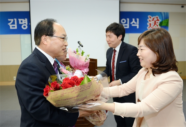 "40¿©³â °øÁ÷»ýȰ, ¾Æ½¬¿òº¸´Ù´Â º¸¶÷À¸·Î Áö³½ ÇູÇÑ ½Ã°£À̾ú½À´Ï´Ù." ÅðÀӽĿ¡¼ ±è¸íÁØ Àü ±¹ÀåÀº ¡°±×µ¿¾È °øÁ÷ ¼±¹èµéÀÌ ÅðÀÓÇà»ç ¾øÀÌ ¹°·¯³µ´Âµ¥ ÅðÀÓ½ÄÀ» ÇØ¾ß ÇÒÁö ¸Á¼³¿´´Ù¡±°í ¿îÀ» ¶¼°í ¡°(ÀÚ½ÅÀ») ½ÃÀÛÀ¸·Î ÈĹèµéÀÌ µû¶æÇÑ À§·Î¿Í ÃàÇÏ ¼Ó¿¡ °øÁ÷À» ¶°³ª´Â ÀüÅëÀÌ ¸¸µé¾îÁö¸é ÁÁ°Ú´Ù´Â »ý°¢À¸·Î Çà»ç¸¦ °®´Â´Ù¡±°í ¸»Çß´Ù. ±è Àü ±¹ÀåÀº ¡°°øÁ÷»ýȰ 40¿©³âÀÇ ³¡À̶ó´Â »ý°¢À» ÇÏ´Ï ¼·¼·ÇÔ°ú ¾Èµµ°¨, °¨»çÇÔÀÌ ±³Â÷ÇÑ´Ù¡±¸ç ¡°79³â ÆÄÁֽÿ¡¼ °øÁ÷»ýȰÀ» ÇÏ¸é¼ º¸³½ Áö³ ÀϵéÀÌ ÁÖ¸¶µî°°ÀÌ ½ºÃÄ Áö³ª°£´Ù¡±°í ȸ°íÇß´Ù. ±×´Â ¶Ç ºÎ¼ÀåÀÌ µÇ¸é¼ ¡°¡®³ª ÀÚ½ÅÀ» À§ÇØ ¿½ÉÈ÷ ÇÏÀÚ, °øÁ÷¿¡ ¹ßÀ» ³»µó´Â ¼ø°£ºÎÅÍ °ø¿ë¹°Ç°ÀÌ µÇ¾ú´Ù°í »ý°¢ÇÏÀÚ, ÀÖÀ» ¶§ ÀßÇÏÀÚ.¡¯¶ó´Â öÇÐÀ¸·Î »ýÈ°ÇØ ¿Ô´Ù¡±°í ¹àÇû´Ù. Æò»ý µ¿¹ÝÀÚÀÌÀÚ ¿µ¿øÇÑ ¸àÅäÀÎ ºÎÀο¡°Ôµµ °í¸¶¿òÀ» ÀüÇß´Ù. ±è Àü ±¹ÀåÀº ¡°¸¹Áö ¾ÊÀº ºÀ±ÞÀÌÁö¸¸ ´Ã ȯÇÑ ¾ó±¼·Î ¾¿¾¿ÇÏ°Ô ³»Á¶ÇØÁØ Áý»ç¶÷¿¡°Ô ÅðÀÓÀÇ ¿µ¿¹¸¦ µ¹¸°´Ù¡±¸é¼ ¡°´Ã ÇÏ°í ½ÍÀº ÀÏÀÌ ¸¹Àº ´ç½Å, »¡¸® ¾ÆÇ ´Ù¸®°¡ ¿ÏÄèµÇ¾î ÇϰíÇ ÀÏÀ» ÇÏ¸ç »ìÀÚ¡±°í ¾ÖÁ¤À» Ç¥½ÃÇß´Ù. °íÇâÀÎ ÆÄÁÖ½Ã¿Í ÈÄ¹è°øÁ÷Àڵ鿡°Ô´Â ¡°ÆÄÁÖ´Â ±Þº¯Çϰí ÀÖÀ¸¸ç À§»óÀº ³¯·Î ³ô¾ÆÁö°í ÀÖ´Ù¡±¸ç ¡°¶Ù¾î³ ´É·ÂÀ» °¡Áø °øÁ÷ÀÚµéÀÌ ÀÖ´Â ÇÑ ÆÄÁÖÀÇ ¹Ì·¡´Â ¹à´Ù. ¸¶À½²¯ ²ÞÀ» ÆîÄ¡°í ÆÄÁÖÀÇ ¹ßÀüµµ ÀÌ·ç±æ ¹Ù¶õ´Ù¡±°í ´çºÎÇß´Ù. ±è¸íÁØ Àü ±¹ÀåÀº ÆÄÁÖÀ¾Ãâ½ÅÀ¸·Î ÆÄÁÖÃʱ³, ¹®»êÁß*Á¦ÀÏ°í±³¿Í ¹æ¼ÛÅë½Å´ë¸¦ °ÅÃÄ ±¹¹Î´ëÇб³ ÇàÁ¤Çаú¸¦ Á¹¾÷Çß´Ù. 73³â ü½ÅºÎ¿¡¼ °øÁ÷À» ½ÃÀÛÇßÀ¸³ª 79³â 7±Þ °øÃ¤½ÃÇè¿¡ ÇÕ°Ý, ÆÄÁֽÿ¡¼ ¹Î¹æÀ§°èÀåÀ» ºñ·ÔÇØ ¹®È°ü±¤°èÀå, °æ¸®°èÀå, ½ÃÁ¤°èÀå µî ÁÖ¿ä ºÎ¼¸¦ µÎ·ç °ÅÄ£ µÚ 2000³â ÇàÁ¤»ç¹«°üÀ¸·Î ½ÂÁøÇØ ½Ã¹Î°úÀå, ±¤Åº¸éÀå, ȸ°è°úÀå, ÆÄÁÖÀ¾Àå, ±â¾÷Áö¿ø°úÀå, ±âȹ¿¹»ê°úÀå µîÀ» ¿ªÀÓÇÏ¸é¼ Å¹¿ùÇÑ ´É·ÂÀ» ¹ßÈÖÇß´Ù. ±×´Â 2007³â 7¿ù ¼±â°üÀ¸·Î ½ÂÁø, »ê¾÷°æÁ¦±¹Àå, ½Ã¹ÎÁö¿ø±¹Àå, ±âȹÇàÁ¤±¹ÀåÀ» °ÅÃÄ ÀÇȸ »ç¹«±¹ÀåÀ¸·Î °øÁ÷À» ¸¶°¨Çß´Ù. °øÁ÷À» ¶°³ ±è¸íÁØ Àü ±¹ÀåÀº (»ç)ÇູÀåÇÐȸ »ç¹«±¹ÀåÀ¸·Î Á¦2ÀÇ ÀλýÀ» ½ÃÀÛÇß´Ù. ¿øÈñ°æ ±âÀÚ
