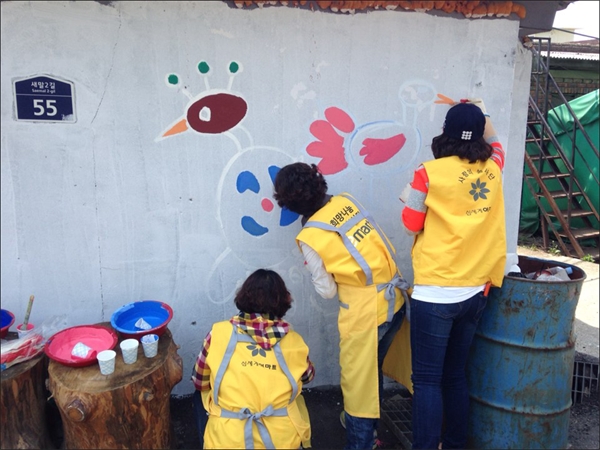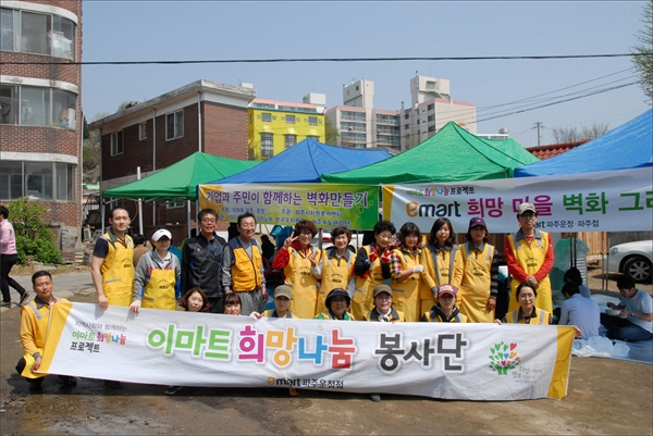 ÆÄÁÖÀÚ¿øºÀ»ç¼¾ÅÍ(¼¾ÅÍÀå ¾È»óÈÆ)´Â 18ÀÏ ÀÚ¿øºÀ»çÀÚµé°ú ±ÝÃÌ3µ¿ »õ¸»±æ ÀÏ´ë¿¡ ¾Æ¸§´Ù¿î º®È¸¦ ±×·Á ȯÇÏ°í ¿¹»Û µ¿³×°¡²Ù±â¸¦ ¿Ï¼ºÇß´Ù. º®È±×¸®±â´Â À̸¶Æ® ÆÄÁÖÁ¡°ú À̸¶Æ® ÆÄÁÖ¿îÁ¤Á¡ÀÌ 6¹é¸¸ ¿øÀ» ÈÄ¿øÇϰí, LGµð½ºÇ÷¹ÀÌ, LGÀ̳ëÅØ, À̸¶Æ® ÆÄÁÖÁ¡¡¤ÆÄÁÖ¿îÁ¤Á¡, ¼öÀÚ¿ø°ø»çÆÄÁÖ°ü¸®´Ü¿¡¼ ÀÚ¿øºÀ»çÀÚ 1¹é¿© ¸íÀÌ Âü¼®ÇØ º®È¸¦ ±×·È´Ù. 2³â ° ÀÚ¿øºÀ»ç ÁßÀÎ ¼¾çȰ¡ È«°ü½Ä ȹéÀÇ ½ºÄÉÃ븦 ±ÝÃÌ3µ¿Ã»³âȸ(ȸÀå Á¤µ¿Ãµ) ȸ¿øµéÀÌ ¹Ø±×¸² ÀÛ¾÷À» Çß°í ÀÚ¿øºÀ»çÀÚµéÀÌ Ã¤»öÀÛ¾÷À» ÇÏ´Â Çùµ¿ÀÛ¾÷ÀÌ ÁøÇàµÆ´Ù. È« ȹéÀº ¡°º®È¸¦ ±×¸° ÆäÀÎÆ®´Â ģȯ°æ Á¦Ç°À» ½è°í ÈÄ¿ø»ç¿Í ºÀ»çÀÚµéÀÌ ÇѸ¶À½À¸·Î ¿½ÉÈ÷ ±×·È´Ù¡±¸ç "¾ÕÀ¸·Îµµ °è¼Ó ¾Æ¸§´Ù¿î ¸¶À» °¡²Ù´Â µ¥ Âü¿©ÇÒ °Í"À̶ó°í ¸»Çß´Ù, ±èÁø¼± 15Åë ÅëÀåÀº ¡°À۳⿡ ÀÌ¾î µÎ ¹øÂ°Àε¥ À۳⠱ݽÅÃʵîÇб³ ºÎ±Ù º®ÈµéÀÇ È¿°ú°¡ ÄÇ´Ù¡±¸ç ¡°º®È°¡ ±×·ÁÁø µÚ ÁֹεéÀÌ ³Ê¹« ÁÁ¾ÆÇÏ°í ³«¼ÇÏ´ø ½À°üµµ ¾ø¾îÁ³°í ¾²·¹±âµµ ¾È ¹ö¸°´Ù¡±°í È¿°ú¸¦ Áõ¾ðÇß´Ù. ÀÌ¾î ±è ÅëÀåÀº ¡°ºÎ³àȸ¿¡¼ ÀÜÄ¡±¹¼ö¸¦ Àå¸¸ÇØ ´ëÁ¢Çߴµ¥ ÁֹεéÀÌ Âü¿©ÇÏ´Â ¿Â µ¿³× ¸¶À»ÀÜÄ¡°¡ µÆ°í ÈÇÕÀÇ ÀåÀÌ µÆ´Ù¡±°í Èå¹µÇÑ ¿ôÀ½À» °¨ÃßÁö ¾Ê¾Ò´Ù. À̳¯ ³²Ã¢¿ì µ¿Àå°ú ±ÝÃÌ3µ¿ÁÖ¹ÎÀÚÄ¡À§¿øÈ¸(À§¿øÀå À̰³ë)µµ Âü¿©ÇØ ºÀ»çÀÚµé°ú ÇѸ¶À½À¸·Î Áñ°Å¿î ÀϼÕÀ» º¸ÅÉ´Ù. ²É, °ïÃæ, ¿øµÎ¸·, ¾ÆÀÌµé µî ½Ã°ñ¸¶À»À» ¾Æ¸§´Ù¿î ÆÄ½ºÅÚ ÅæÀ¸·Î º®È¸¦ ±×¸° »õ¸»·Î ÀÏ´ë´Â ¿À·¡µÈ °Ç¹°ÀÇ ¾îµÎ¿òÀÌ »ç¶óÁ³À¸¸ç ´Þµ¿³×ÀÇ ¾îµÎ¿î À̹ÌÁö¸¦ ¹þ°í ȯÇÑ ¸¶À»·Î Å»¹Ù²ÞÇß´Ù. ¾È»óÈÆ ¼¾ÅÍÀåÀº ¡°À۳⿡ º®È¸¦ ±×·Á ÁֹεéÀÇ È£ÀÀ¿¡ À̾î À̸¶Æ®ÀÇ ÈÄ¿øÀ¸·Î ¶Ç ´Ù¸¥ ¸¶À» ¹®È¸¦ °³Ã´Çß´Ù¡±¸ç ¡°Áö¿ª»çȸ¿¡ ±â¾÷°ú ºÀ»çÀÚ, ÁÖ¹ÎÀÌ ÇѸ¶À½À¸·Î ½Çõ¹®È¸¦ ÀÌ·èÇÑ °Í ¡±À̶ó°í ºÀ»çÀÇ ´Ù¾ç¼º°ú ¹®ÈÁ¤¼¿¡ ±â¿©ÇÑ °øÀ» ³ôÀÌ Æò°¡Çß´Ù.