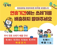 ½Ã ¡®Ãß¼®¿¬ÈÞ¿¡´Â ¾²·¹±â ¼ö°Åµµ ½±´Ï´Ù!¡¯ 18ÀϺÎÅÍ Á¤»ó ¼ö°Å ½Ã´Â Ãß¼® ¸íÀýÀ» ¸Â¾Æ ȯ°æ¹ÌÈ­¿ø ÈÞ¹« º¸ÀåÀ» À§ÇØ ¿¬ÈޱⰣ(15-18ÀÏ)... [Áö¿ª¼Ò½Ä] ÆÄÁÖÀú³Î