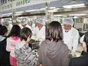 ±Ý¸ªÃʵîÇб³¿¡¼­ ½Ç½ÃµÈ ¹«»ó±Þ½Ä ù³¯ ÀÌÀÎÀç ½ÃÀå°ú ±è»ó°ï ±³À°ÀåÀÌ ¹è½ÄÀ» ÇÏ°í ¾ÆÀ̵é°ú ÇÔ²² ½Ä»ç¸¦ ³ª´³´Ù. [±³À°] ÇѼºÈñ