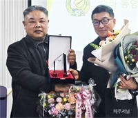 ÃÖ±¤ÀÏ È¸Àå(»çÁø ÁÂ)ÀÌ ±è°æÇö ÀÌÀÓ È¸Àå¿¡°Ô °¨»çÆÐ¸¦ Àü´ÞÇÏ°í ±×°£ÀÇ ³ë°í¿¡ °í¸¶¿òÀ» ÀüÇß´Ù.ÆÄÁÖ½ÃÅ״ϽºÇùȸÀå ÀÌ*ÃëÀÓ½ÄÀÌ 15ÀÏ ÆÄÁÖ½º... [Áö¿ª¼Ò½Ä] ÆÄÁÖÀú³Î